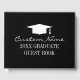 Custom high school graduation guest book. Elegant black and white design template with academic tassel hat logo. Let class students and guest write their comments. Classy script typography template. Colours can be changed.