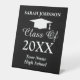 Custom high school graduation pedestal sign. Elegant typography template and tassel hat logo. Add your own graduate year, name etc. Customise with your own school colours.