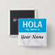 Custom Hola Hello my name is pin button. This nametag has a bright blue background with a modern white marble pattern for your personalised name. You can change the blue background colour for your own style. Use this easy template to customise the text and name. Great for reunions, business meetings, church groups, study groups, training classes, gatherings, parties, employees, etc...