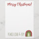 Custom Holiday lettehead with boho Christmas tree . Christmas writing paper template. Peace love and joy! Custom writing stationery for winter Holiday season. Cute hand drawn design with handwritten typography. Red and green colours. Great for menu's, party invites, events and other written communication.