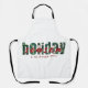 Customise with your preferred text or name on this cute "Holiday" Typography. Patterned letters with green winter and Christmas pattern with elements like trees, snowman, candy canes and Christmas ornaments. A red script on top spelling "season".