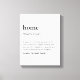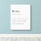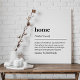 Create your very own custom home definition, featuring your family name below. Black and white minimalist dictionary style heartwarming definition of home. Black modern typography print on white background. Personalise the definition if you like or just add your family name, you can also choose a different background colour if you enter in the design tool. This personalised home definition canvas print makes a unique gift for newly weds, new home owners or adds a personal and modern touch to your own home. A minimalist home decor idea for living room, bedroom or entrance hall.