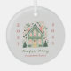Give the gift of cosy holiday magic with our personalised festive ornament. This adorable design features a charming winter cottage. Add a personal touch by including your names and year. Share the joy of the season with this perfect gift!
