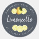 Elegant and modern limoncello sticker label with the text limoncello, homemade with love and your name in chic script calligraphy and modern typography on a charcoal dark blue background with a stylish touch of pretty watercolor lemon and lemon slices. Simply add your name or business. Exclusively designed for you by Happy Dolphin Studio. If you need any help or matching products please contact us at happydolphinstudio@outlook.com.