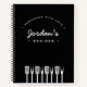 Personalise this recipe notebook for that special chef in your life. Black background with cutlery illustrations at the bottom with unique and modern typography style . Featured here with the words "homemade with love", name and recipe that is customisable as needed.
