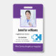 Create your own personalized employee name tags and badges using a vertical elegant modern template that is easy to add your own photo, company logo, Bar Code and other important information. A simple business design in purple and white & name and title with bar code. No minimum order.