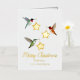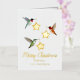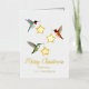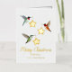 Cute custom Christmas card featuring a ruby-throated hummingbird, a rufous hummingbird and a female Anna's hummingbird carrying star ornaments. The inside message is "Wishing you a season full of light and laughter for you and your family." The text can be changed or deleted for your own handwritten message.