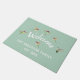 This unique custom doormat is featuring Anna's Hummingbirds on a light emerald green background.