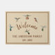 Pretty custom doormat for hummingbird lovers featuring Allen's and Rufous Hummingbirds on a beige background.