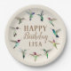 These pretty custom paper plates feature several hummingbird species native to the Western States of the US such as Anna's Hummingbirds, Black-chinned, Costa's, Calliope and Broad-billed Hummingbirds. Personalise it with your own text using the templates provided. The font style, font colour, and font size can be changed by clicking on "customise further".