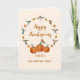 Custom hand-painted Happy Thanksgiving Card featuring an autumn-inspired wreath of North American hummingbirds and pumpkins. The inside message "May all the good things of life be yours, not only at Thanksgiving but throughout the coming year." can be changed or deleted for your own handwritten message.