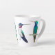 Custom latte mug for hummingbird lovers featuring a Mexican Violetear Hummingbird, a female Ruby-throated, a Long-billed Starthroat and a Broad-billed Hummingbird. Personalise with your name. The font style and font size can be changed by clicking on "Edit using design tool."