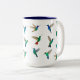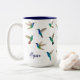 Unique colorful mug for hummingbird lovers featuring several species of hummingbirds, such as Fiery-throated Hummingbirds, Blue-chinned Sapphire, Golden-tailed Sapphire, Mexican Violetear and Mango Hummingbirds. Just add your name -- you can change the font style and font size. Images taken from original watercolor paintings by Christiane Dobbins.