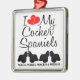 This custom "I Love My Four Cocker Spaniels" ornament is perfect for anyone who owns four Cocker Spaniel dogs, just change to your own Cocker Spaniel names with the provided box.