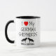 This custom "I Love My German Shepherds" mug is perfect for anyone who owns two German Shepherds, just add your own dog names.