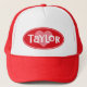 Monogram cap with personalized name TAYLOR on red with pink heart