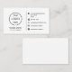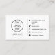 White or custom, modern, elegant and professional business card design with template fields for name, company name/title, logo (photo or other graphic) and contact information including custom icon. Only upload icons that you have permission to use. Use the resize tools to change the background colour, move and resize elements.