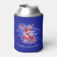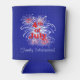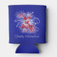 Add a touch of bright colour to your Independence Day celebration with these red, white and blue 4th of July fireworks can coolers.  Red and white fireworks with stars are bursting in air on a deep blue background bordered in bright red.  Custom text on front and back may be personalised using the template provided.