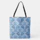 Custom Indigo Blue Floral Faux Lace Pattern Tote Bag