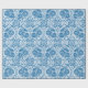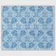 Custom Indigo Blue Floral Faux Lace Pattern Wrapping Paper