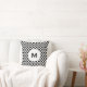 Add your custom initial front and back, to this pillow with black polka-dots big and small on a white background. Click Customise It to change fonts, background colours, pillow size, even save your design for later.