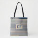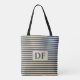 Custom Initial Blue/Vanilla Stripes Tote Bag