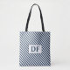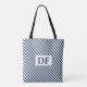 This fashionable tote has blue and white stripes, giving it a timeless and trendy look. Add your initials to make it uniquely yours. Whether you're at the mall, the grocery store, or a casual day out, this tote is the perfect accessory to complete your outfit and keep your essentials in one place. Make a statement and order today!
