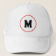 Custom initial in red ring trucker hat