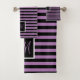 Custom Initial Lavender and Black Striped Bath Towel Set