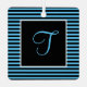 Custom Initial Letter Blue and Black Striped Metal Tree Decoration