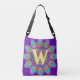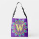 Custom initial psychedelic Cross Body Tote Bag purple.