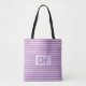 This fashionable tote has purple stripes, giving it a timeless and trendy look. Add your initials to make it uniquely yours. Whether you're at the mall, the grocery store, or a casual day out, this tote is the perfect accessory to complete your outfit and keep your essentials in one place. Make a statement and order today!