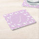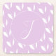Custom initial white silhouette leaves purple square paper coaster