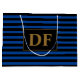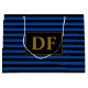 Custom Initials Blue/Black Stripes Large Gift Bag