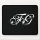 Custom Initials Modern Chic Black & White Mouse Pad. Fantastic Freaky Geek style customisable double initial monogram in white scripty text on black. Great for gamers, and other mouse lovers.