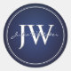 Custom Initials Navy Blue and Silver Classic Round Sticker