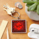 Custom Initials Red Wood Modern Rustic Art Deco Key Ring