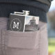 Custom flask with room for 7 square shaped photos and a monogram.