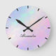 Add a touch of modern elegance to any room with this minimalist iridescent wall clock. Perfectly blending style and personalisation, this clock allows you to add your name or a special word in graceful script font, making it a unique and eye-catching statement piece for your space. A beautiful addition to your home decor, it also makes a beautiful personalised gift for birthdays, Christmas, holidays and housewarmings.