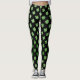 Custom Irish Green Glitter Shamrock Pattern Black Leggings