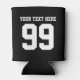 Custom jersey number can coolers. Sporty beer holder for home, wedding, tailgate party and other events. Personalise yourself. Make your own personalised cosy can coolers. Personalizable with sports team name, monogram and / or funny quote. Perfect for beer and other cold drinks. Customisable colour design. ie black and white. Change the quantity to get the cheapest price per can cooler. Also available for alcoholic beverages in bottles. Make your own for football, baseball, basketball, hockey, softball, soccer etc. Tailgating fun.