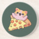 Custom Kawaii Cat Hugging Pepperoni Pizza Cartoon Coaster