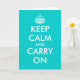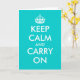 Turquoise Keep calm and carry on greeting cards. Cute vintage card for friends, family, coworkers, corporate employee, colleagues, staff, personnel, team. Personalizable text and custom background colour. Create your own keep calm and carry on parody. Great for Christmas, Holidays, celebrations etc.