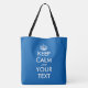 Custom keep calm and your text navy blue tote bag or cross body bags for men, women and teen kids (boy or girl). Extra large bid size.