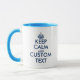 Custom Keep calm combo coffee mug with colour inside. Create your own funny Keep Calm and Carry On parody. Modern typography template with crown. All customisable colours including the crown icon. Fun drink cups for home or office. Add your own text. Cool Birthday or Christmas gift idea for friends, family, coworker, colleague, teacher, boss, boyfriend, girlfriend etc. Blue coloured handle and inside. Double side print.