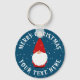 Custom keychain with funny little snow gnome troll drawing. Cute round button key chain with personalised text and colourful illustration. Fun bulk Christmas gift idea for friends, family, coworker, colleague, employee, kids etc. Add your own greeting and (business) name.