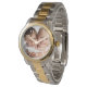 Very good quality watch that looks good whether dressing up or down. The band is sturdy. The watch is rather large so might not work for smaller folks. Recommended as a good gift. Printing is just a touch light but adds a nice touch of personalization.