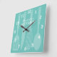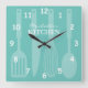 Personalised kitchen wall clock with cooking utensils Teal / Turquoise blue and white or custom background colour. Cute decoration gift idea for chef cook mum, dad, mother, aunt, sister, daughter, wife, friend etc. Spoon knife spatula and whisk with number dial and custom name. Square or round version.