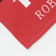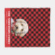 Personalised Labradoodle Family dog Buffalo Plaid Christmas Fleece Blanket with red and black buffalo plaid pattern. Cute labradoodle dog with Christmas scarf and easy to Personalise with family name and each family member's name and dog's name. Cute Christmas gift for families with labradoodles.