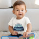 These cool custom lake house baby bodysuit feature a serene blue river surrounded by trees and your personalised text for a family reunion, camping trip, or summer vacation. Customise with your last name or other group name.